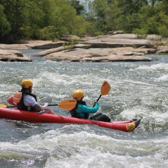Designed to be very stable, inflatable kayaks (or duckys) are the perfect choice for an easygoing guided trip down the river. Paddling the mild Class I-II rapids is a blast, leaving you with time to enjoy the views and learn a bit about the river’s history. We even have tandem inflatable kayaks if you’d like to paddle with a partner!